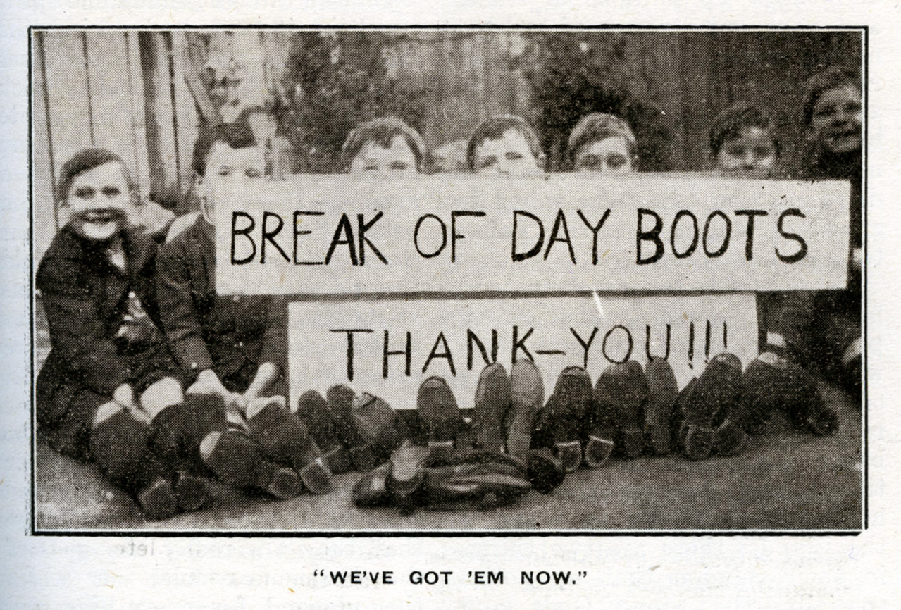 ‘ Boots! Boots! Boots! Hampers of Boots for the Orphanages’ was the call to all.