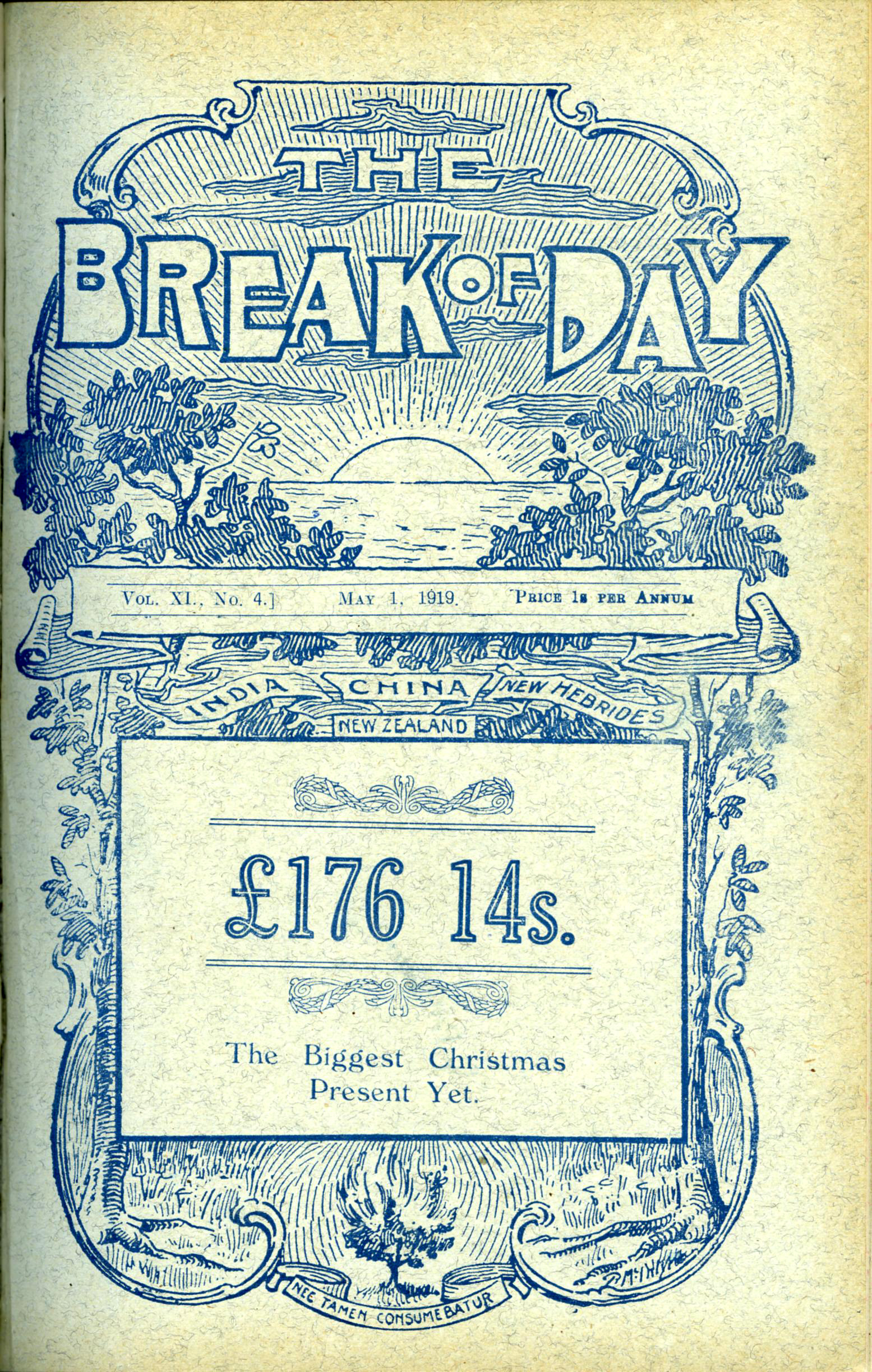 The previous year, 1917, the Break of Day Christmas Gift raised £155.18.7 for village children in India, in all 12,474 threepenny bits (and obviously a one penny coin!) was gathered; the aim for 1918 was to exceed that number of threepenny bits.