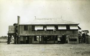 Dunbar Hospital lay close to 300 km north west of Cairns in Northern Queensland. Our semi-forgotten packet of photos includes a large two story “tin shed” which we now know to be Dunbar Hospital. Clad in corrugated iron with no apparent internal lining, large sun shades protect the semi-open upper level. One hopes however that it did not prove to be a fiery furnace! Taken inside the building are images of the fridge (which would have been kerosene powered) and the pedal transceiver. The latter includes the actual radio apparatus and headphones, dry cells, and floor mounted pedals connected to a generator, the latter being an early invention of Australian Alfred Traeger who became the Radio Engineer for A.I.M.. But more intriguingly is a typewriter with wires attached to it on a shelf under the radio. Through research we now know that outback stations used another of Traeger’s inventions, the highly ingenious “Traeger Telephony Transceiver”, being a typewriter actuating keys to automatically generate morse code simply by typing the keys for each letter of the alphabet.