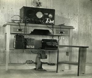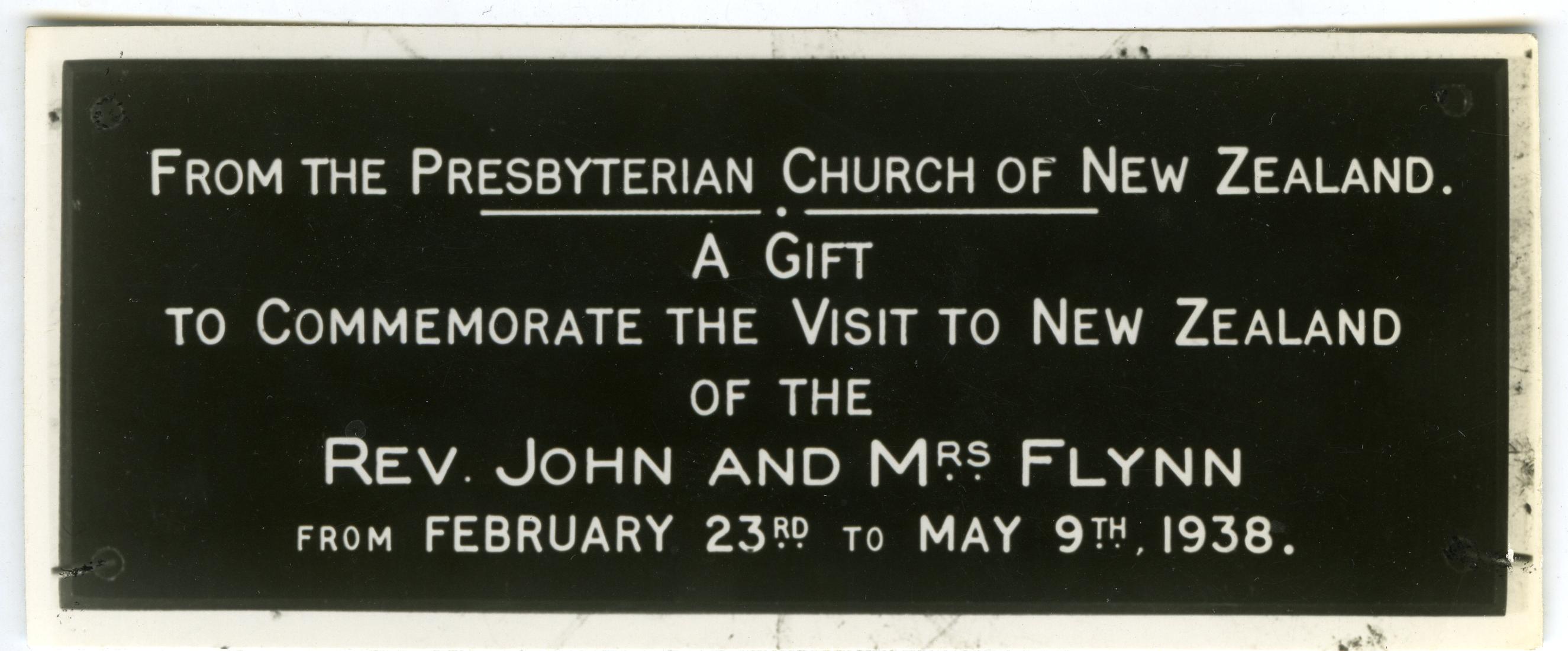 The photos include a fridge, a ‘Heath Robinson’ looking wireless set-up, a seemingly large ‘tin shed’, and a close up of a small plaque commemorating “A Gift” from the Presbyterian Church of New Zealand to commemorate the visit of the Rev John and Mrs Flynn in 1938.