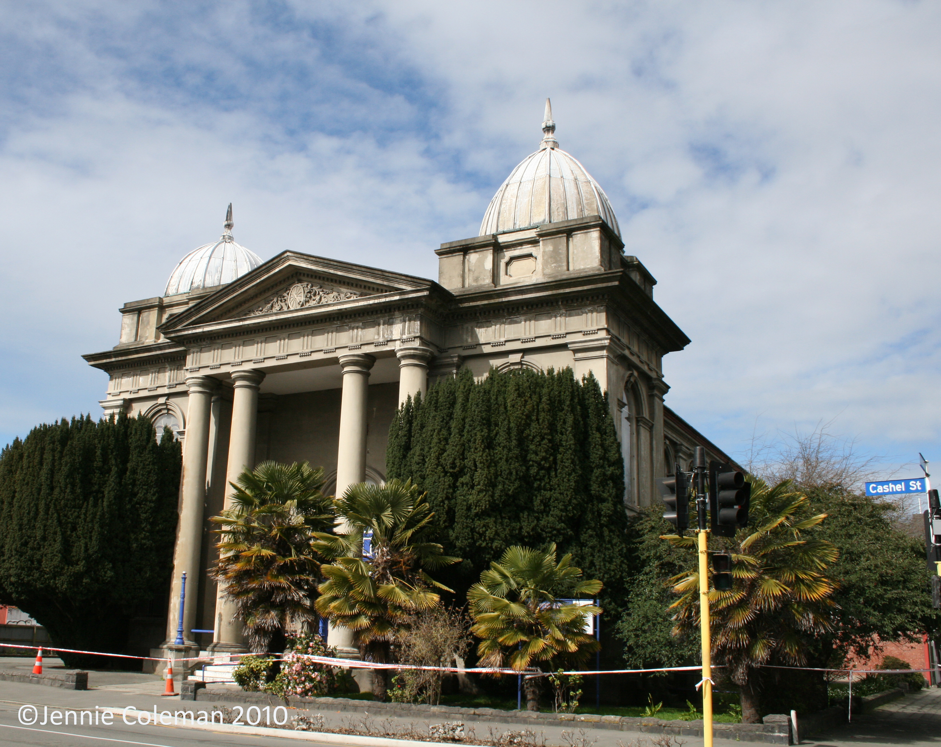Just seven days after the Canterbury earthquake of September 4, 2010, my presence was required at a family wedding whose Christchurch venue had been declared safe. But the inner-city buildings beckoned and the digital shutter fairly clattered in response. Red-stickered doors and windows spelled degrees of doom varying from potential to inevitable. The more dispiriting recognition of those beyond redemption was difficult to process. And so, by the time I had wound my way from Cathedral Square, east along Worcester Street, around west Latimer Square to Madras Street and its intersection with Cashel Street, I was hardly prepared for a most encouraging sight: that of an apparently intact, albeit orange-stickered, St Paul’s Presbyterian Church.