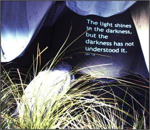 “The light shines in the darkness, but the darkness has not understood it” Detail of display at Salvation Army Hall.